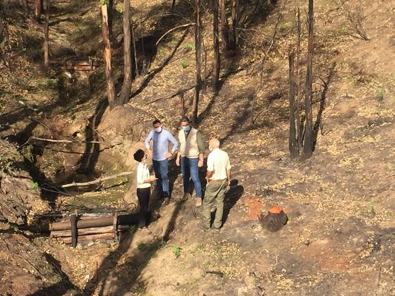 Álvaro Burgos ha estado acompañado durante la visita por el coordinador de la Delegación Territorial, José Enrique Borrallo, quien ha asegurado que “estos tratamientos selvícolas en la masa arbolada previenen la proliferación de plagas en las masas forestales no afectadas por el incendio”. “Además -ha añadido- la materia vegetal generada por estas cortas se usan como material constructivo para las infraestructuras hidráulicas”.