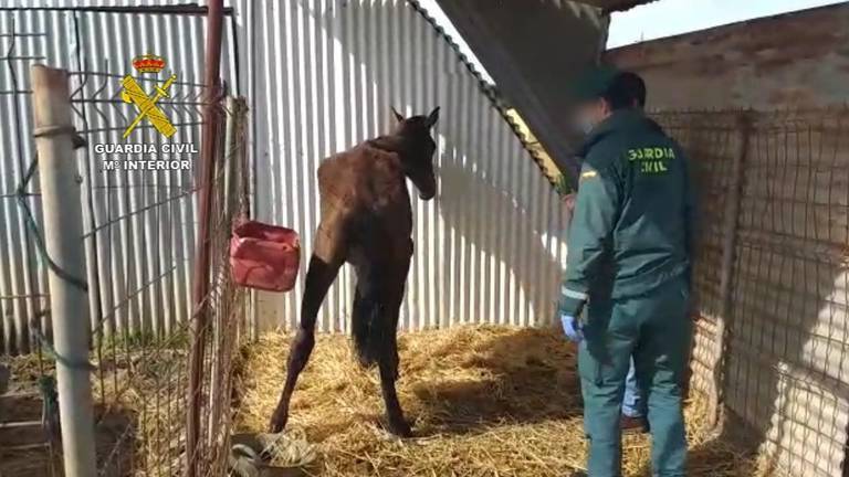 Una vez localizado el lugar por los agentes del Equipo de Protección de la Naturaleza (Seprona), éstos pudieron verificar la existencia de un yegua joven la cual se hallaba con claros síntomas de desnutrición y una movilidad reducida, por lo que en el lugar se realizaron gestiones para localizar e identificar al titular de la parcela y poder acceder a ella.