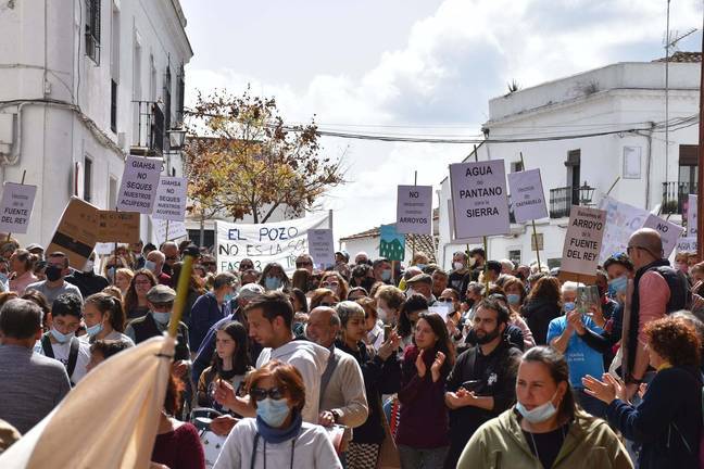 La manifestación fue un rotundo éxito de participación que puso de manifiesto el sentir de los serranos. La sociedad habló ayer, en las calles de Aracena, ahora les toca a las administraciones estar a la altura, “mojarse” y entender que existen alternativas más viables y respetuosas con el entorno que no provocarían tanto impacto ambiental y social como la sobreexplotación de unos acuíferos cada vez más esquilmados.