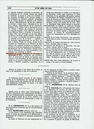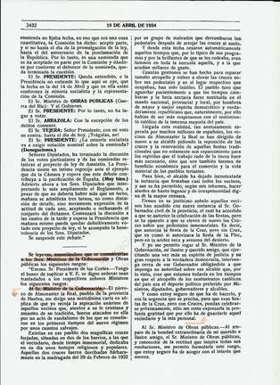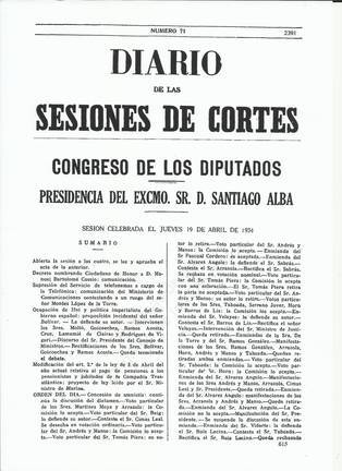 Tal y como informa al sacerdote, dicho ruego aparece recogido en el diario de sesiones de las Cortes Nº 71, en la sesión celebrada el jueves 19 de abril de 1934, apareciendo en el sumario de la sesión y expuesto con más detalles en la página 2432. La intervención completa fue la siguiente: