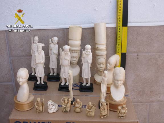 Según ha explicado la Guardia Civil, durante el desarrollo de las investigaciones los agentes pudieron comprobar que un anticuario de la provincia de Huelva investigado comercializaba, a través de anuncios en páginas de Internet numerosos lotes de objetos, figuras e incluso colmillos de marfil de elefante africano, los cuales distribuía mediante diferentes empresas de paquetería.