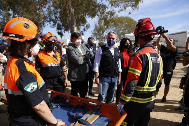 El consejero de la Presidencia, Administración Pública e Interior, Elías Bendodo, que se ha desplazado al Puesto de Mando situado en Aljaraque, así como al escenario de rescate y atención a múltiples víctimas en Huelva, junto a la consejera de Igualdad, Políticas Sociales y Conciliación, Rocío Ruiz, ha señalado que se trata de un simulacro sin precedentes: “Estamos ante un simulacro histórico en Andalucía. Nunca antes han participado todas las provincias a la vez, ni se ha reunido a casi dos mil efectivos, entre personal de todas las administraciones y distintas entidades y colaboradores, para poner a prueba la capacidad de respuesta y atención en emergencias ante múltiples situaciones catastróficas en más de 40 escenarios distintos”.