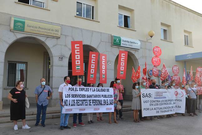 UGT y CCOO se ha manifestado públicamente contra la decisión de la Consejería de Salud de despedir a más de 8.000 profesionales en toda Andalucía, de los que entorno a los 300 corresponden a la sanidad pública de Huelva.