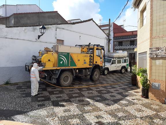 Este martes han realizado trabajos para desinfectar en Berrocal, San Juan del Puerto y Minas de Río Tinto.