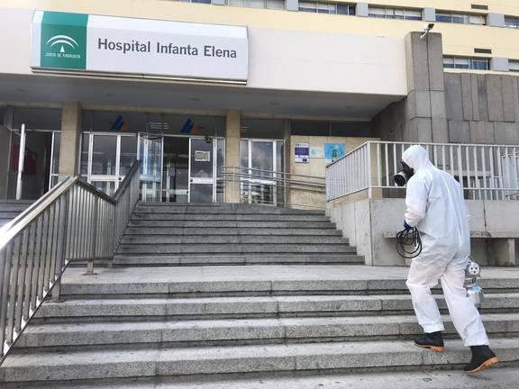 Por cuarta vez desde el comienzo de la crisis del Covid-19, la Unidad de Emergencia Militar (UME) ha colaborado en las tareas de desinfección del hospital Infanta Elena. Se tiene constancia de la intervención de los militares en el centro hospitalario durante el 24 y 27 de marzo y un tercer día en abril. Este martes han vuelto para reforzar estas labores.
