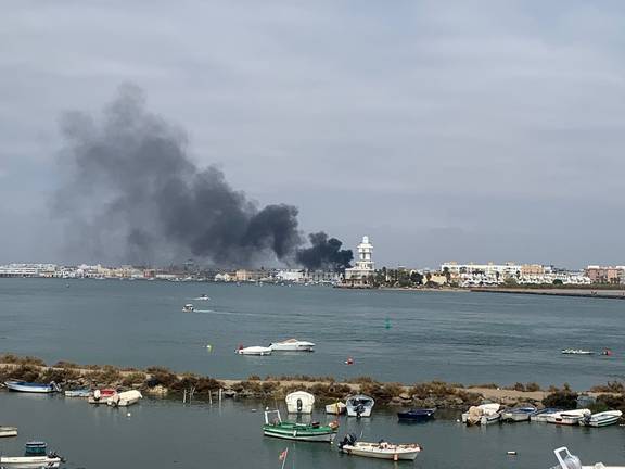 La llamas y principalmente el denso humo negro que generó la combustión del material náutico fue visible desde gran parte de la población isleña.