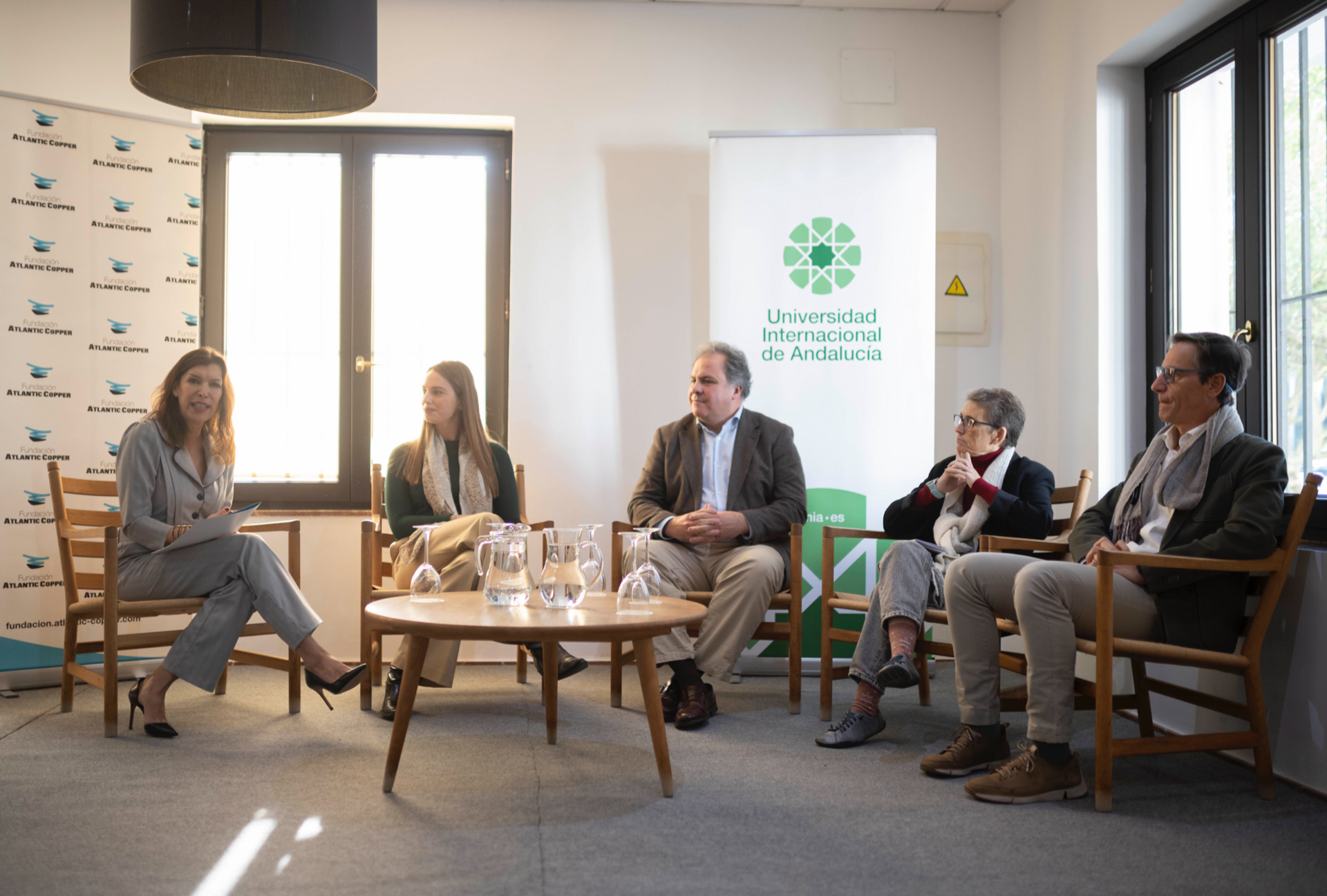 Posteriormente, se celebró una mesa de conversación bajo el lema “Las oportunidades del talento STEM en Huelva”, moderada por Ángeles Sánchez, directora de la Fundación Atlantic Copper. Entre los participantes se encontraban la alcaldesa de Palos de la Frontera, Milagros Romero, las directoras de la Cátedra y de la sede de La Rábida, Mª del Carmen Sánchez y Mª de la O Barroso, así como los delegados territoriales de Economía y Empleo de la Junta, Lucía Núñez y Juan Carlos Duarte. Durante este espacio se debatieron estrategias para fortalecer la presencia y continuidad de profesionales STEM en la provincia.