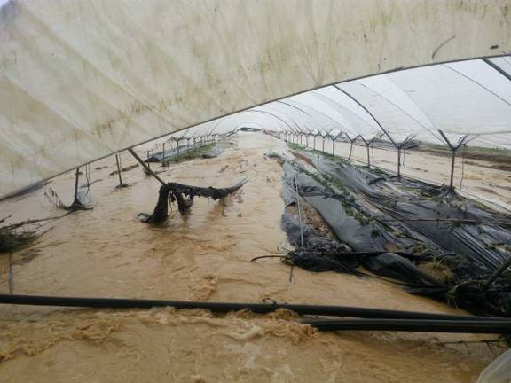 UPA Huelva ha calificado de "catastrófica" la tarde y noche de ayer para el campo onubense. El temporal que azotó a la provincia ha causado daños en explotaciones y caminos. Estos daños se suman a los ya sufridos desde el pasado fin de semana y registrados en explotaciones de Lepe, Isla Cristina y Cartaya, donde se repiten los daños y sumando ahora a explotaciones de la Redondela.