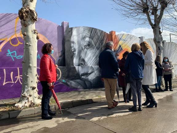 La alcaldesa de Valverde del Camino, Syra Senra, ha inaugurado hoy un mural realizado por Jacobo Palos Wey en los exteriores del campo de fútbol Nuevo Alcalki con los rostros de Almudena Grandes, Clara Campoamor y la valverdeña Rosa Rite. El acto se enmarca en la programación que ha organizado el Ayuntamiento con motivo del 8 de marzo y ha contado con la asistencia de familiares Rosa Rite, una de las protagonistas.