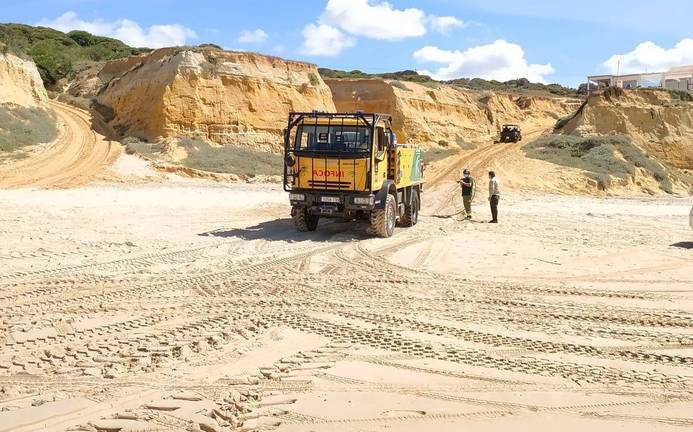 El Grupo de Emergencias de Andalucía (GREA) ha movilizado a dos técnicos y tres agentes, además de tres vehículos todoterrenos, que se encuentran en el lugar y que han desplegado el Puesto de Mando Avanzado (PMA) a la altura del ‘Chiringuito Banana’ en Matalascañas como centro neurálgico de coordinación de todas las actuaciones que se van a realizar para limpiar los enclaves afectados.