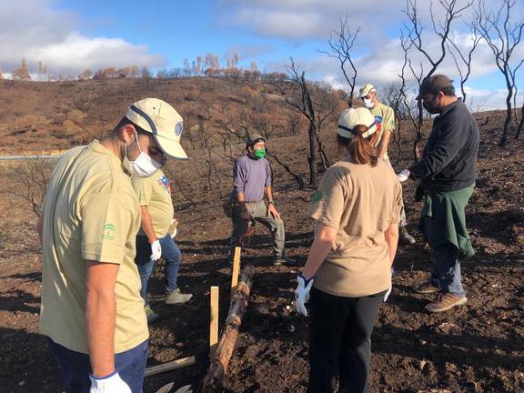 “Estos trabajos conllevan labores sencillas de restauración hidrológica forestal para la protección del suelo desnudo por reducción de la velocidad de la escorrentía. Sin embargo, tienen una gran importancia desde el punto de vista social y en aras de la concienciación”, ha destacado el coordinador de la Delegación Territorial de Agricultura, Ganadería, Pesca y Desarrollo Sostenible, José Enroque Borrallo, quien ha participado de la acción.