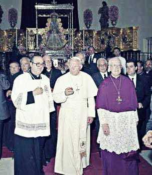 -Efectivamente Félix, fue el día 22 de octubre de 2013 y es el día en que se celebraba la misa de Juan Pablo II, entonces era solamente proclamado Papa. Dije la misa a las 9, ese día estaba lloviendo, salí con el coche y acercándome ya a Cáceres, fui a frenar y el coche no me respondía y entonces di cuatro vueltas y en ese momento dije: “Juan Pablo II a ti me encomiendo”. La policía que me atendió quedó extrañada que, ante la magnitud del accidente, saliera ileso. Después he tenido la dicha de decir dos misas en la basílica de la Presentación de la Bienaventurada Virgen María, en Wadowice (Polonia), donde fue bautizado. Y en el museo donde él vivió me dijo la guía, “padre aquí no hay tierra de Huelva y hay de todos los sitios que Él ha visitado, ya que cogía tierra nada más bajar del avión de todos los sitios que acudía. Pero me comentó, usted que sí está en muchas fotos con su Santidad”. Me alegró ver sobre todo una donde estoy junto al Santo Padre en el célebre balcón del Rocío, donde Juan Pablo, comentó que todo el mundo debería ser rociero.