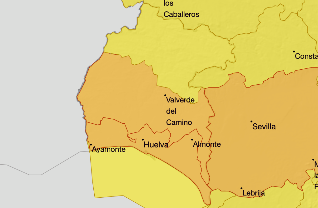 La Agencia Estatal de Meteorología ha decretado para mañana un aviso naranja por fuertes lluvias asociadas a la borrasca Claudia, que llegará a Huelva con precipitaciones abundantes y de carácter persistente. La alerta permanecerá activa desde las 12.00 hasta las 20.00 horas y afectará a las comarcas de la Costa, el Condado y el Andévalo, quedando fuera de este nivel de riesgo la zona de la Sierra, donde se espera un episodio menos intenso.