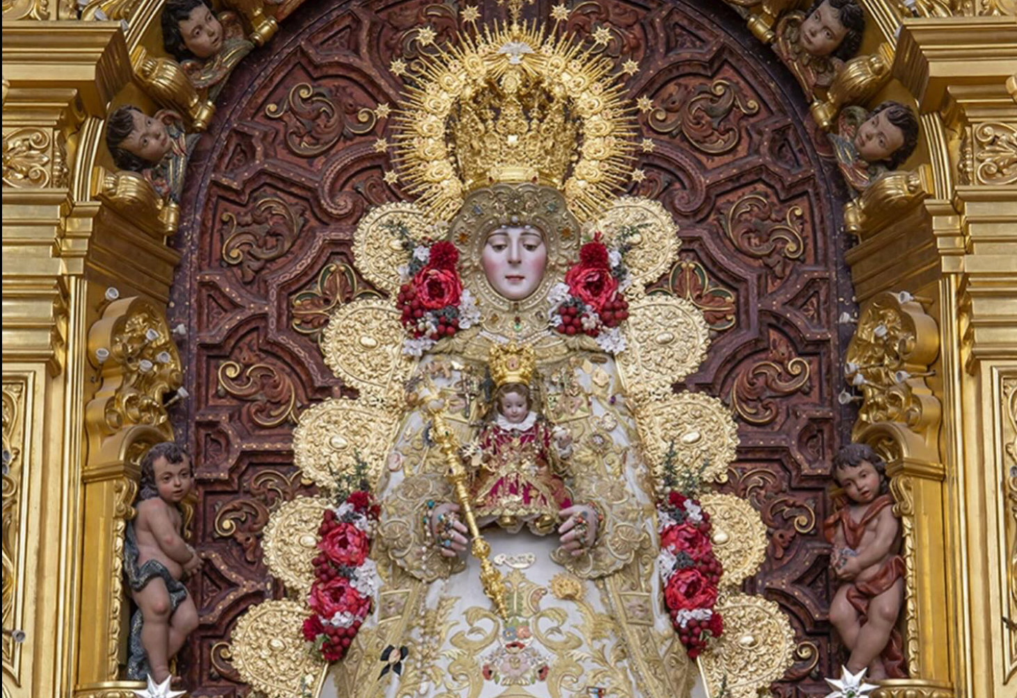 La Virgen del Rocío luce desde este fin de semana un discreto crespón como muestra de duelo y respeto por las personas fallecidas en la tragedia ferroviaria de Adamuz.