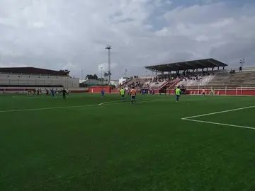 Aparecen pintadas contra el Consejo de Administración en el muro exterior de la Ciudad Deportiva del Recre. La hinchada albiazul eleva sus reproches del césped al palco.