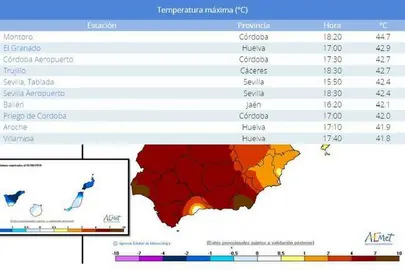 Al igual que ocurriera en el día de ayer, en la red de estaciones meteorológicas evaluadas por meteoclimatic, Valdelamusa ha liderado el ránking nacional con 45,7 grados.