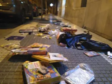 La imagen es bastante habitual y que la basura aparece con frecuencia extraída de los contenedores y esparcida por el suelo por lo que al parecer algún transeúnte tiene esta curiosa ocupación.