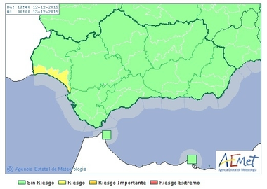 Huelva Huelva estará en aviso amarillo por lluvias y tormentas hasta las 7.00 horas de este domingo Redacción 12/dic/2015