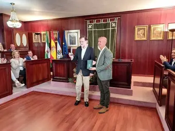 Rajoy firma en el Libro de Honor lepero y también ha aprovechado la visita para firmar ejemplares de su último libro, 'Política para adultos' en Lepe y la capital.
