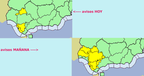 Las comarcas donde AEMET activa el aviso amarillo para este jueves son Sierra, Cuenca Minera, Condado-Campiña y Andévalo. Toda la provincia menos el litoral, de momento.