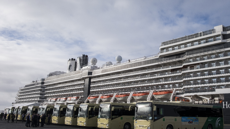 Los visitantes han tenido a su disposición una flota de diez autobuses para trasladarlos a la Casa Colón desde las 9,30 horas hasta las 16,30 horas, donde han degustado vinos de la zona