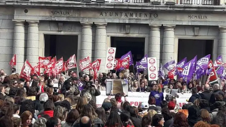 Concentración de UGT y CC OO en apoyo de la jornada de huelga feminista