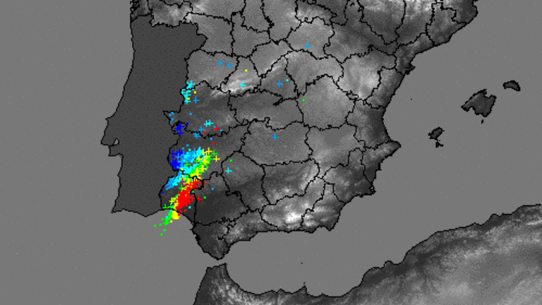 El sistema de medición de rayos de Aemet ha confirmado que Huelva ha sido una de las zonas más afectadas por la inestabilidad eléctrica