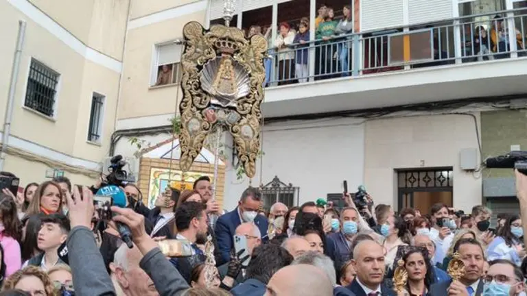 En la mañana de hoy ha tenido lugar la bendición del azulejo que la Cofradía de la Santa Cruz ha donado a la filial rociera con motivo de su cincuentenario fundacional.