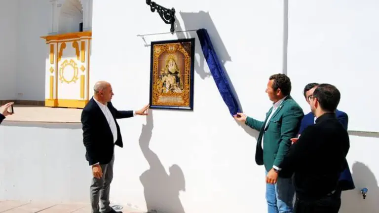 Bendecido el azulejo donado por la Santa Cruz por el cincuentenario de Emigrantes