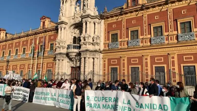 La Plataforma por la Sanidad Pública de Huelva (PSPH) se ha concentrado en las puertas del Palacio de San Telmo, sede del Gobierno de la Junta de Andalucía, para protestar y alzar la voz por la...