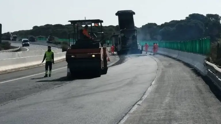 El firme de la carretera presentaba un estado muy deteriorado, con ondulaciones, abundantes fisuras, cuarteos y piel de cocodrilo en la capa de rodadura y baches generalizados.
