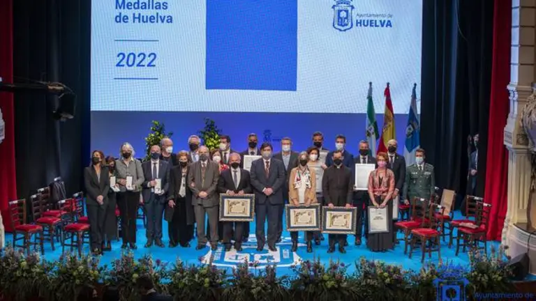 Reciben la Medalla de Huelva Garrido Palacios, Paula Martínez, María Teresa Paus, Manuel Carrasco Carrasco, Atlantic Copper, Brotes de Olivo, Aones y Avadi Down, el Señor en la entrada triunfal de...
