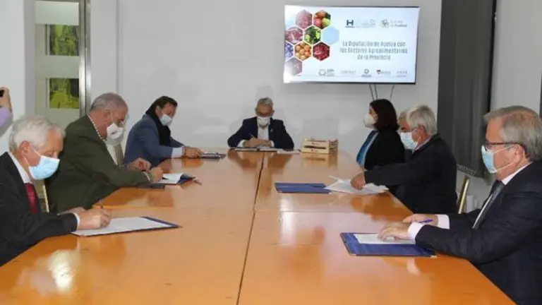 La Diputación provincial firma un convenio de colaboración con UPA-Huelva, la DO Jabugo, el CRDO Vino de Huelva y Vinagre del Condado, Freshuelva y la Asociación de Citricultores.