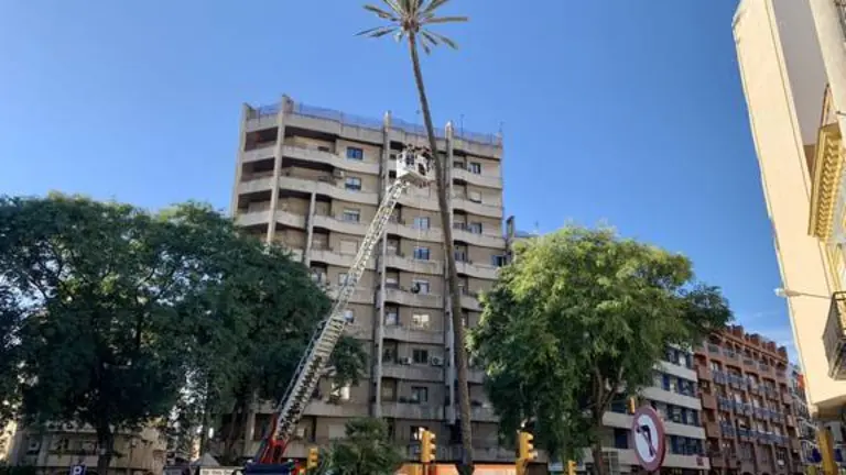 Objetivo: evitar que la centenaria palmera de 25 metros de Quintero Báez enferme y se caiga
