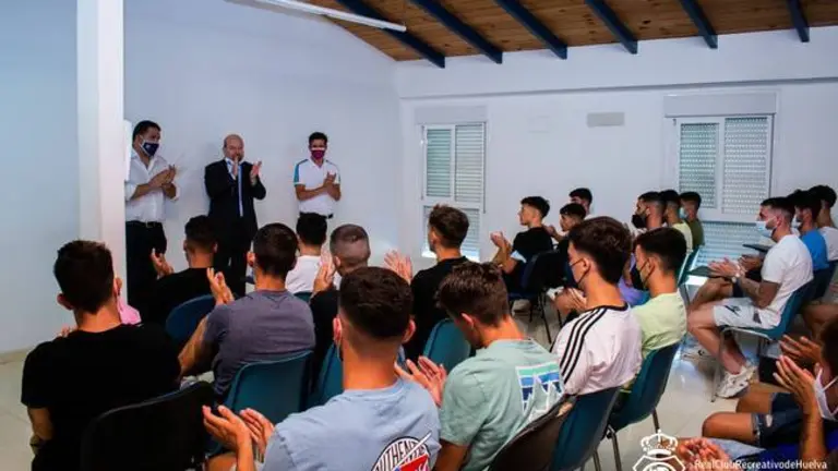 La vibrante arenga del presidente a los nuevos futbolistas del Recreativo