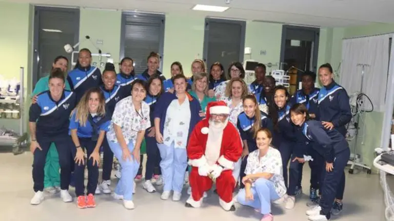 Las espartanas, en compañía de Papá Noel, visitaron a los niños ingresados en el hospital Juan Ramón Jiménez. Un detalle y un modo de restar tensiones en la previa del decisivo partido contra el...
