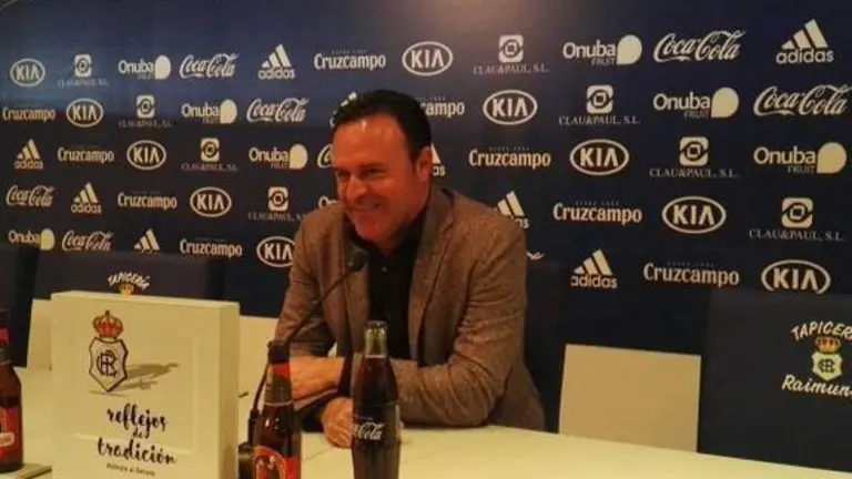 El entrenador del Recreativo defiende la labor de Óscar Carazo y señala que algunas críticas hacia el director deportivo exceden del terreno profesional.