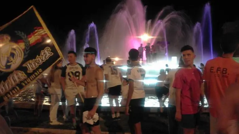 Los madridistas onubenses celebran la consecución de la décimo segunda Copa de Europa del Real Madrid con cohetes, bocinas y una concentración en la Avenida de Andalucía.
