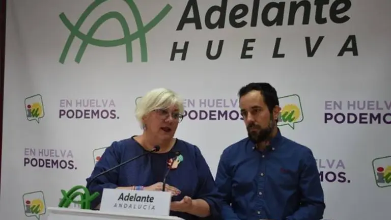 Mónica Rossi, candidata de Adelante Huelva a la alcaldía de la capital junto al candidato de Unidas Podemos al Parlamento Europeo, Manuel Pineda, han comparecido hoy en el Parque de Zafra para...