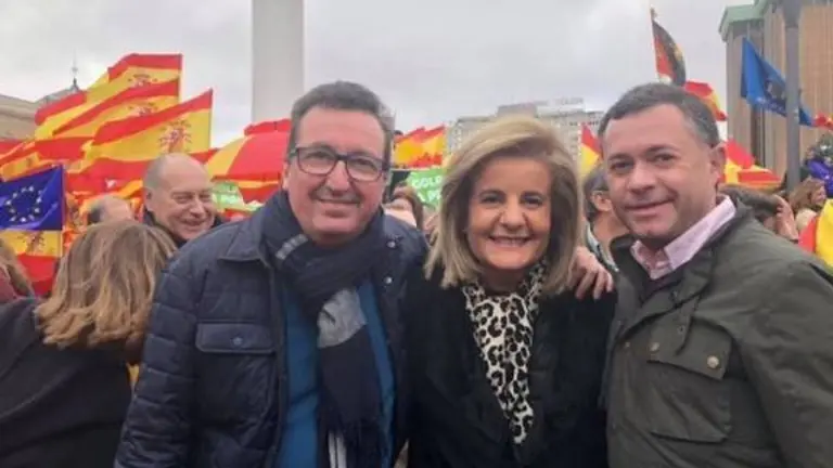 Políticos de PP, Vox y Ciudadanos de Huelva en la manifestación contra Sánchez en Madrid