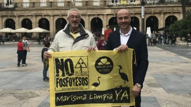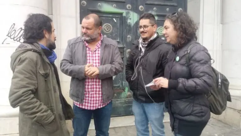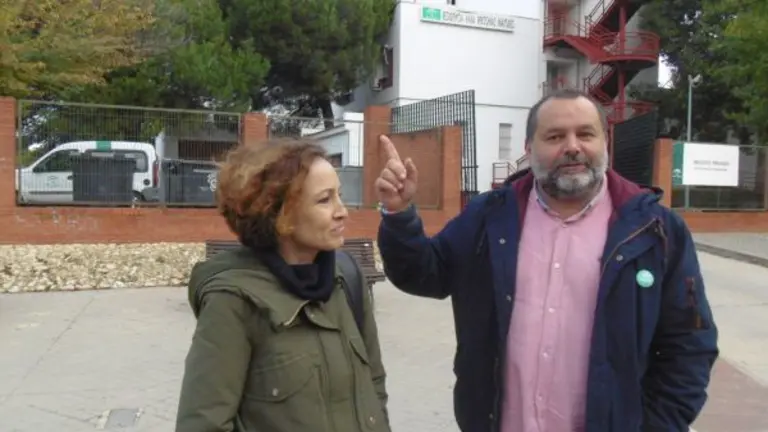 El candidato de Adelante Andalucía por Huelva, Rafael Sánchez Rufo y la también candidata Esther Carbajo, han informado a las puertas del Banco de España, en la ciudad de Huelva, sobre propuestas...