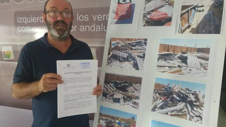 El vertedero con amianto sigue igual 12 días después de la denuncia, según IU Redacción 12/jul/2016 Pedro Jiménez critica que en los alrededores "se siguen tirando escombros de todo tipo"