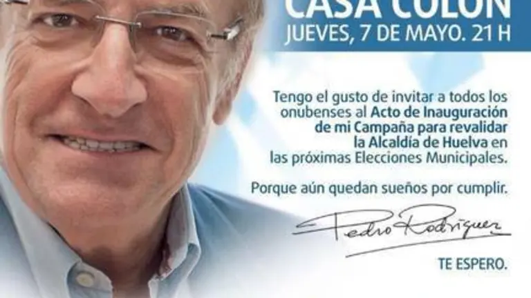 Pedro Rodríguez esconde las siglas del PP en su invitación al acto de inicio de campaña Redacción 06/may/2015