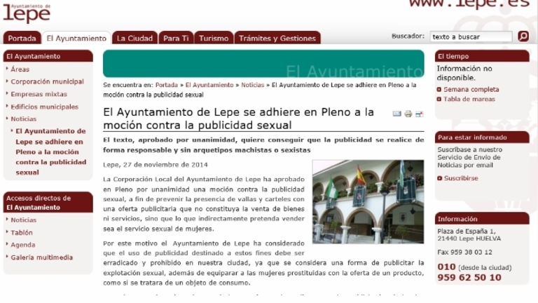 El alcalde de Lepe "se apropia" de la iniciativa de IU contra la publicidad sexual Redacción 28/nov/2014