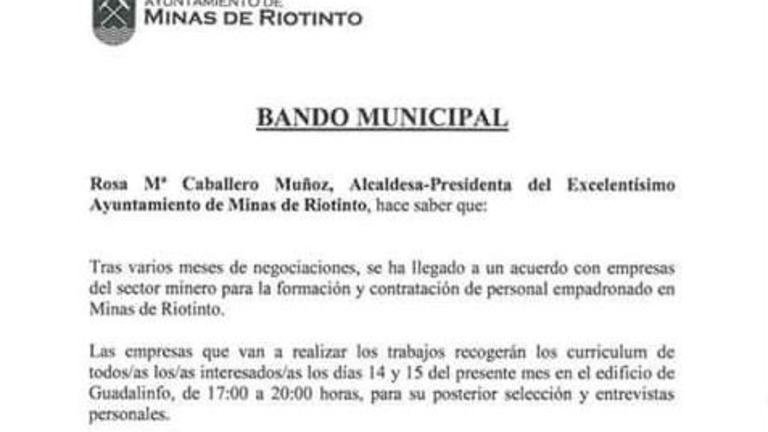Un bando de la alcaldesa de Riotinto reaviva la polémica sobre el empleo minero Redacción 15/abr/2015
