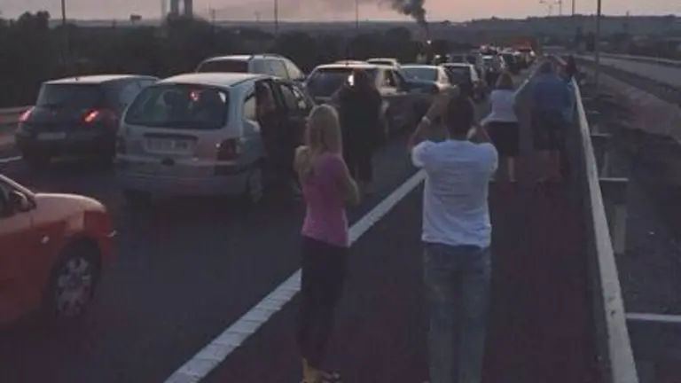 Un coche ardiendo obliga al corte total de la A-49 a la altura de La Palma del Condado Redacción 31/oct/2014