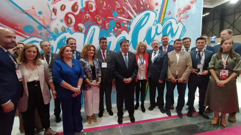 El ministro de Agricultura, Luis Planas; el presidente del PP, Alberto Núñez Feijoo; la consejera de Agricultura, Carmen Crespo; y la presidenta de la Diputación, María Eugenia Limón muestran su...
