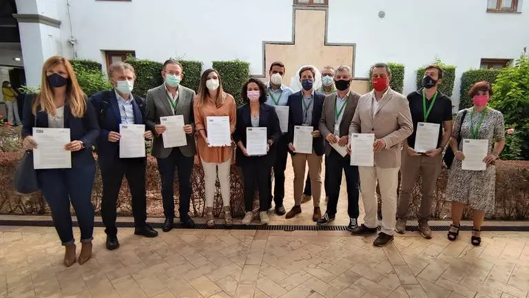 Se han trasladado hoy desde la Sierra numerosos alcaldes y concejales de la comarca para hacer visible su reclamación ante el Parlamento.