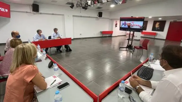 El secretario de Estado de Medio Ambiente mantiene un encuentro con la dirección del PSOE de Huelva y representantes de la plataforma a los que ha avanzado que visitará en breve la provincia.