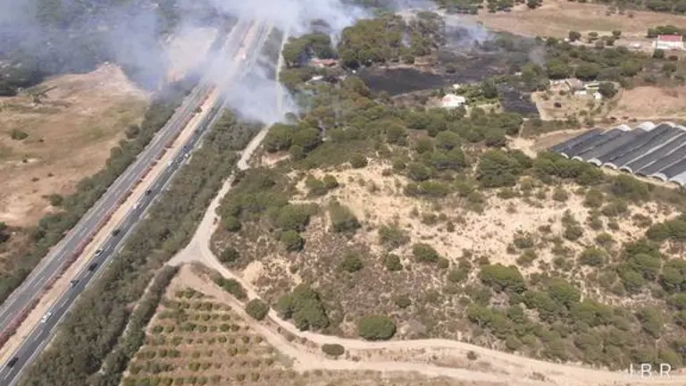Investigan la aparición de un vehículo calcinado en la A-49, entre Cartaya y Lepe